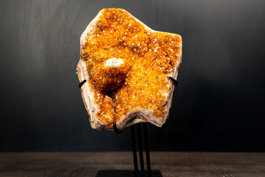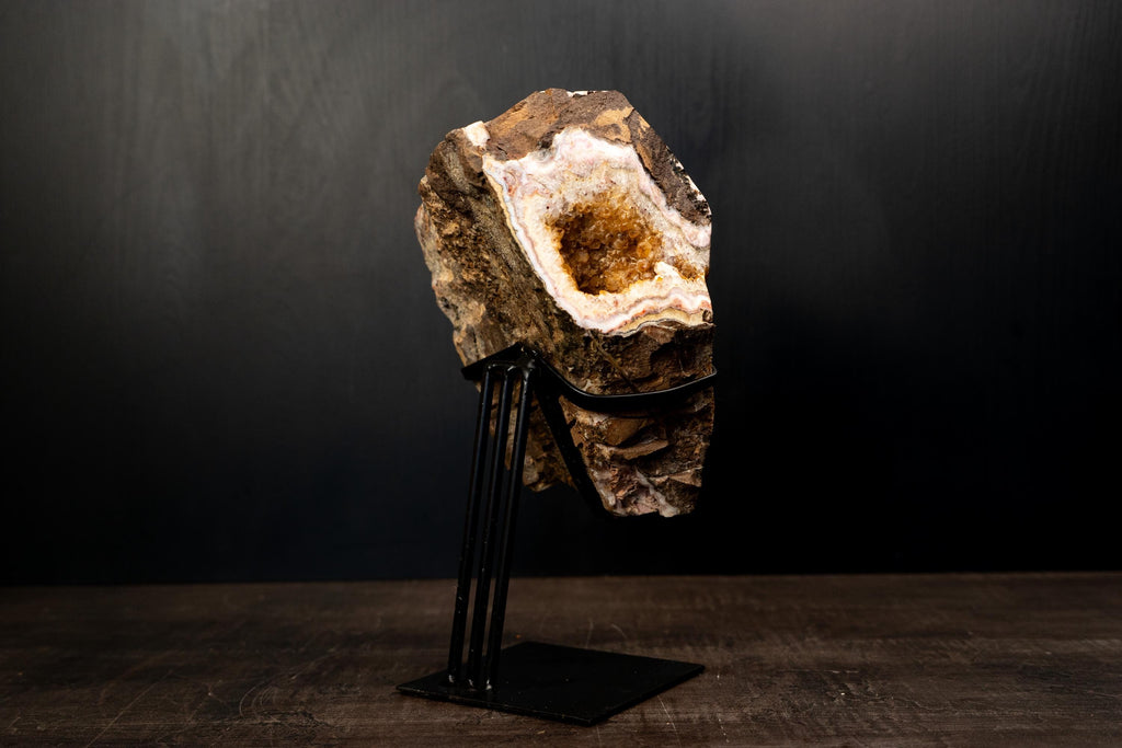 Citrine Geode Cluster with Stalactite Eye and Micro-Calcite