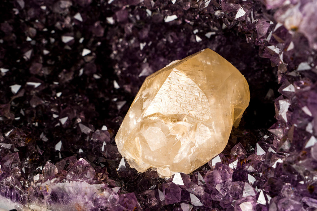 X-Large Calcite on a Gorgeous Amethyst Geode