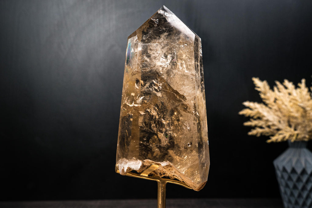 Spectacular in many ways, this genuine natural Citrine obelisk is a true masterpiece of nature. Featuring a rainbow-filled quartz body and a refined Honey Citrine tone, this crystal stands out for its clarity, elegance, and presence—an exceptional addition to a serious collection or a refined accent for your space.