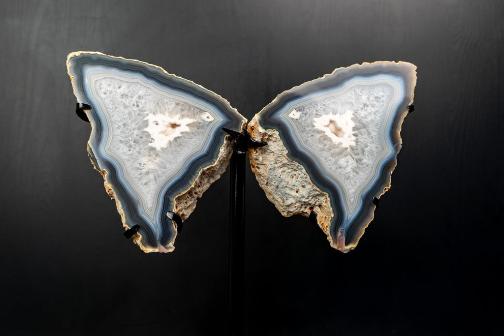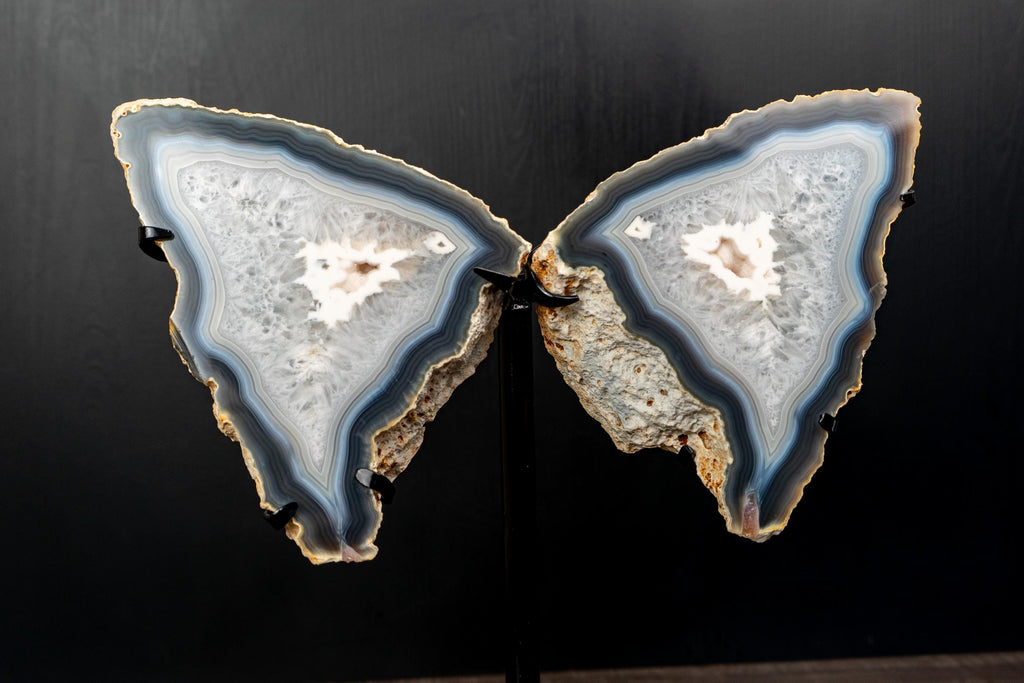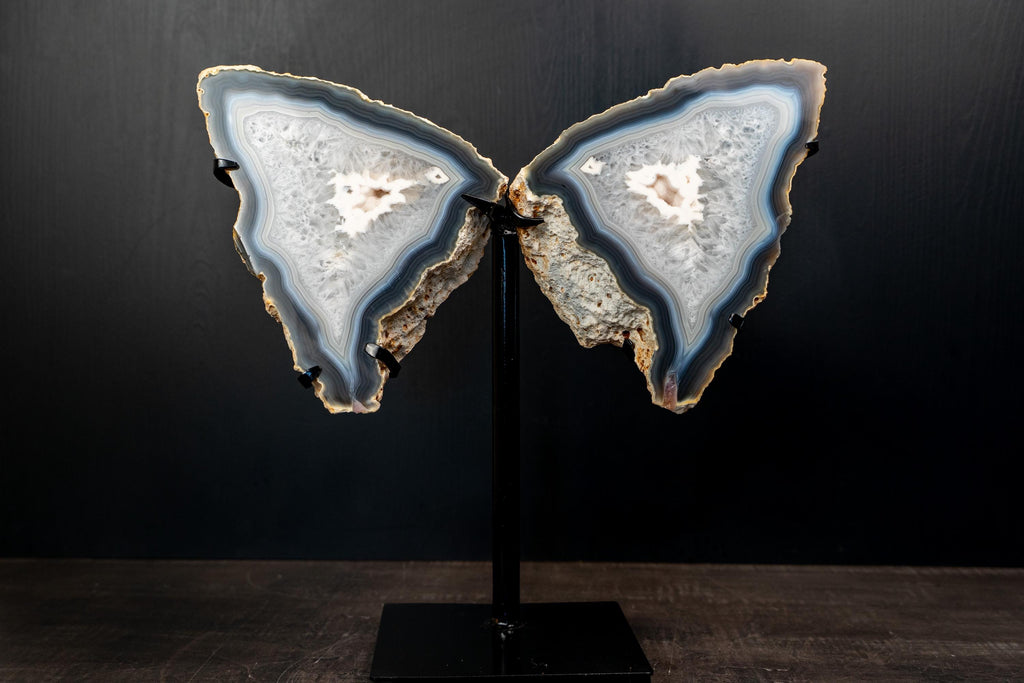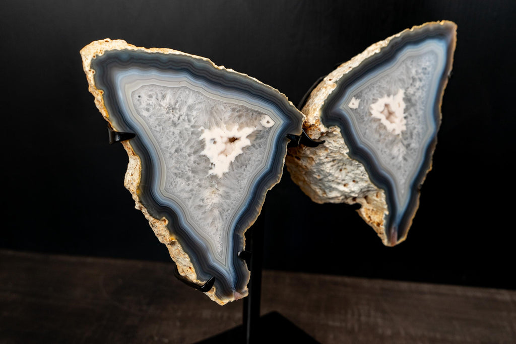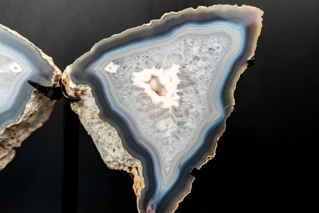 Natural Blue Lace Agate Butterfly Wings Geode on Stand