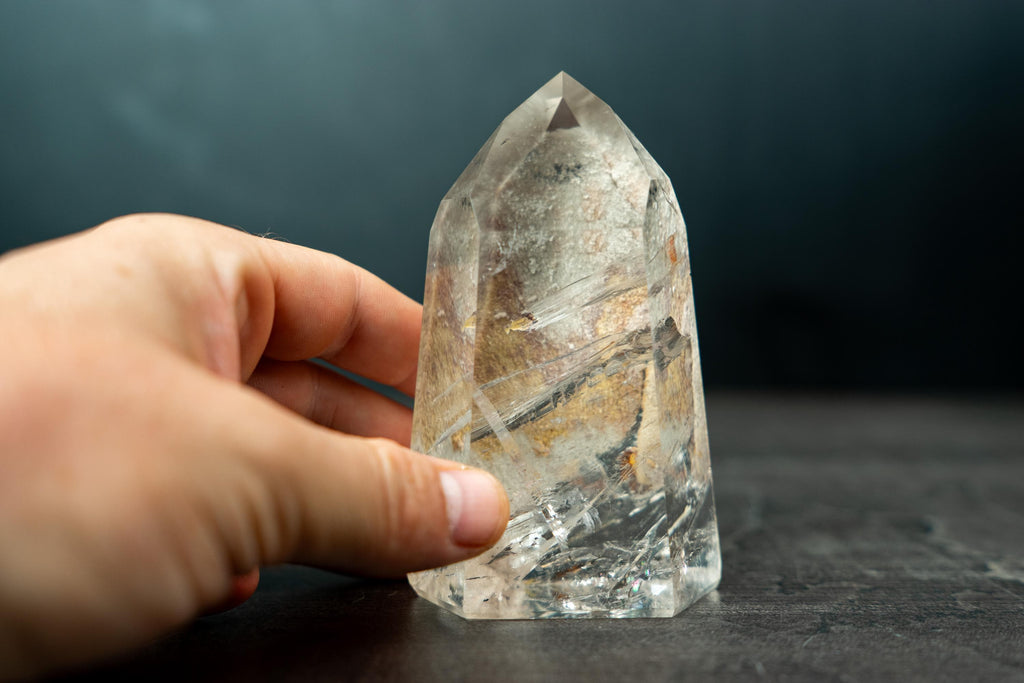 What makes this specimen especially special is the lapidary approach. The crystal was shaped and polished with a light touch, keeping its natural form while creating clean faces that let you see straight into the interior. The result is a clear quartz window that highlights the white lodolite details from multiple angles.