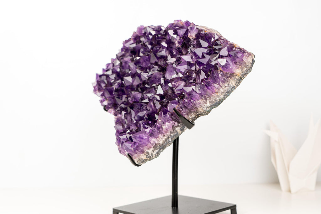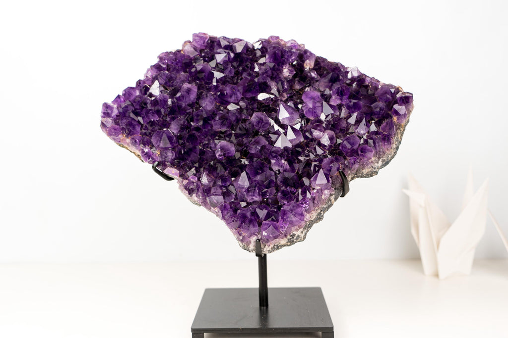 Large Saturated Rich Purple Amethyst Cluster with All-Natural Druzy