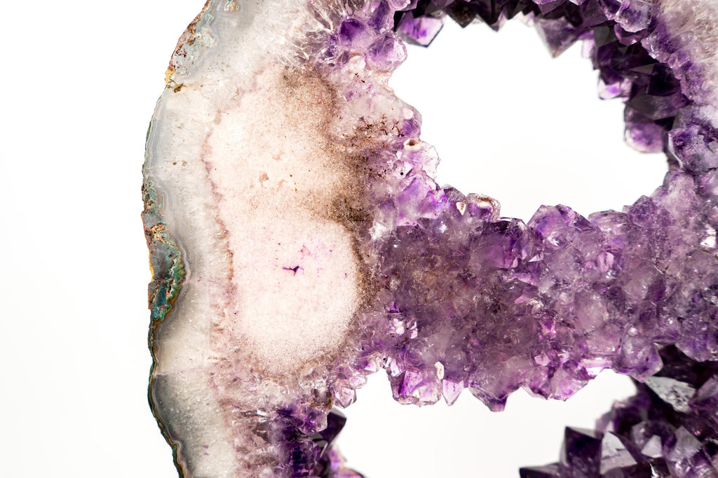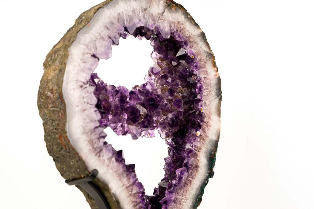 One of the most remarkable characteristics is the natural amethyst bridge connecting one side of the portal to the other. This architectural feature was preserved through careful cutting of the back of the geode, enhancing the sense of movement across the opening — a formation rarely found in such clean condition.