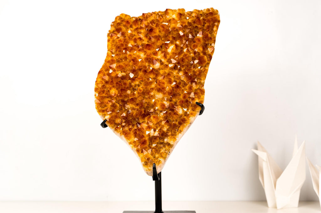 Tall Orange Citrine Cluster with Sparkling Druzy on Stand