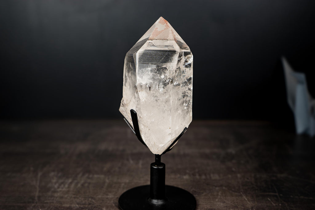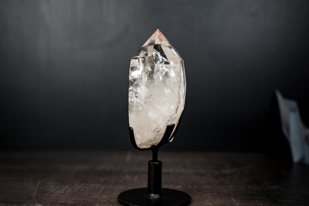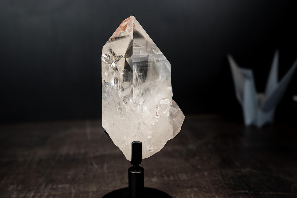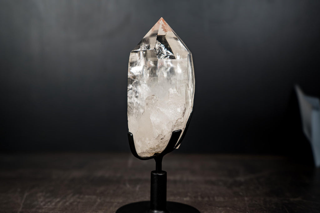 This exceptional Lemurian Quartz Point from Diamantina, Brazil is a rare and powerful specimen of remarkable purity and clarity. Once a diamond-mining region in the 18th and 19th centuries, Diamantina is now revered for producing some of the world’s clearest and highest-energy quartz crystals.