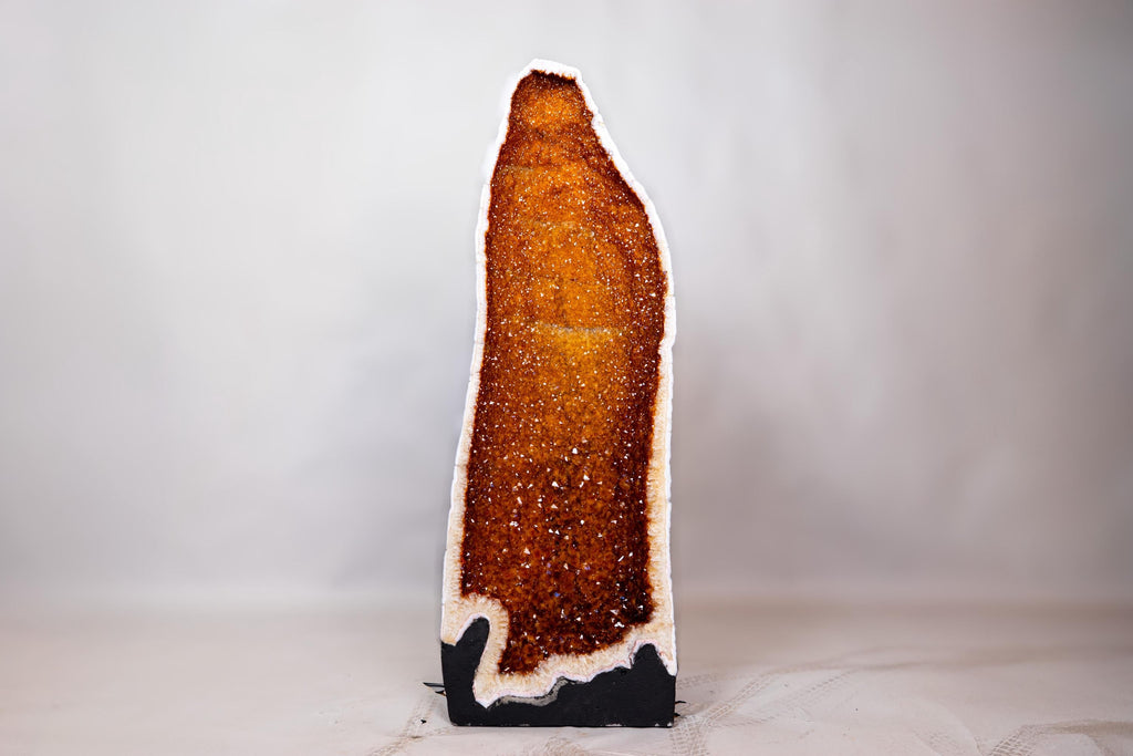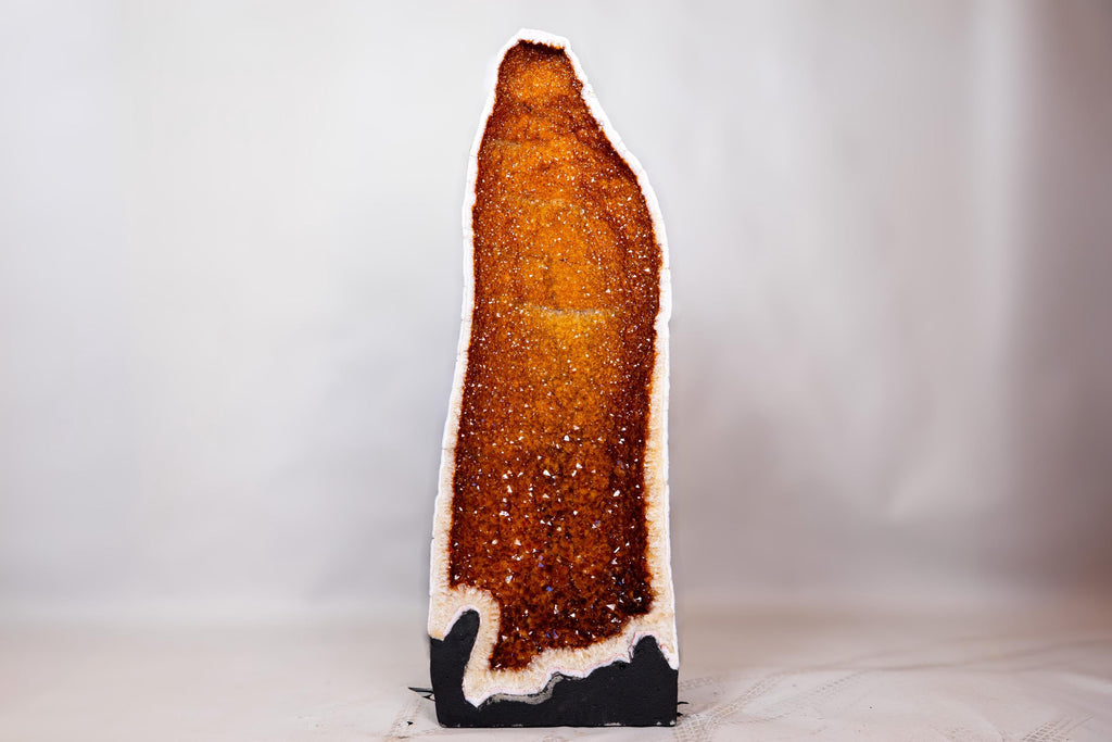 From time to time, nature gifts us with a true masterpiece — and in this case, it comes in the form of a tall, sculptural Citrine Geode Cathedral. Filled with sparkly golden-orange druzy and shaped in a classic cathedral formation, this piece is ideal for collectors or anyone looking for a strong focal element in a home interior, office, or hotel lobby.