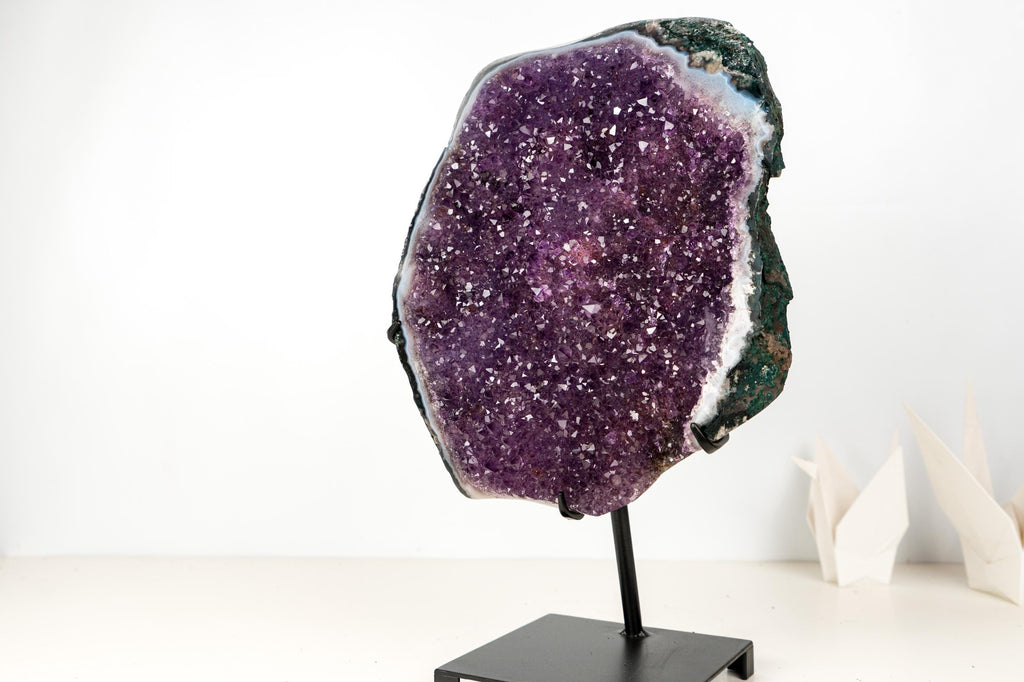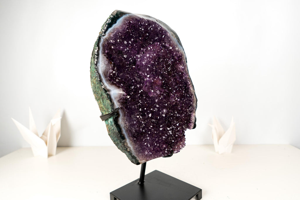 Specimen: Amethyst Geode Cluster with Galaxy Druzy and Polished Agate Back