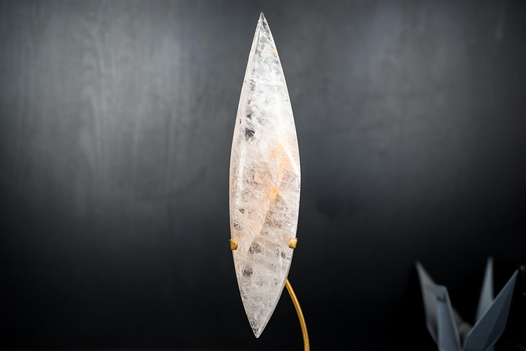 With decades of experience, the artisan sculpted this flame with meticulous attention to detail, shaping every curve to reflect the elegance and dynamism of natural fire. The upward motion of the design enhances its aesthetic balance, while the gentle transparency of the quartz brings light and vitality to the room.