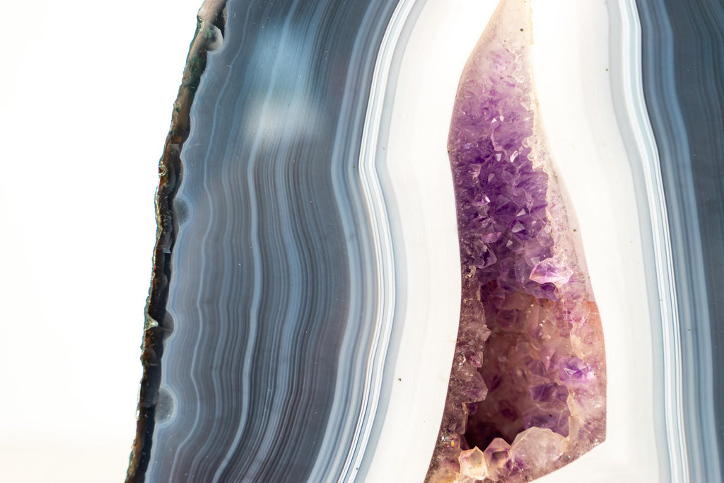 Blue & White Lace Agate Geode with Amethyst Druzy