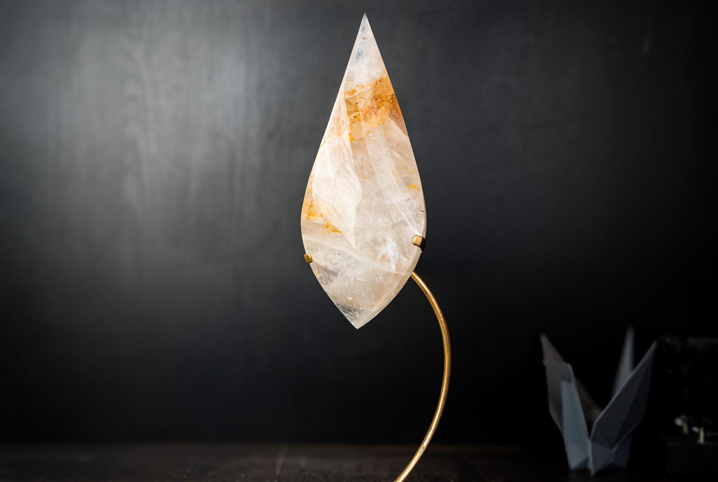 Delicate Golden Healer Quartz Crystal Teardrop Sculpture