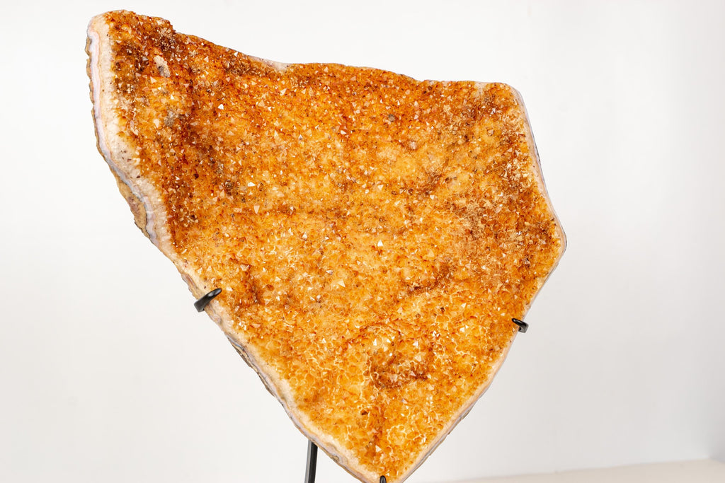 An exceptional Citrine cluster, this large specimen features a naturally aesthetic formation with sparkling golden-orange druzy. Bold and full of energy, it makes a spectacular addition to any home décor, office space, or crystal collection.
