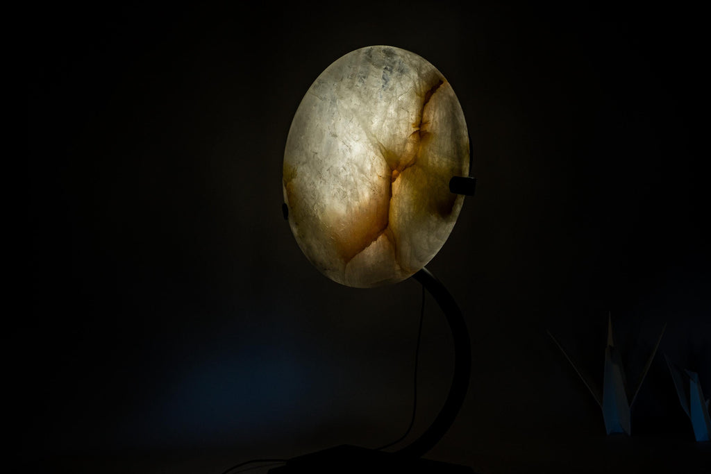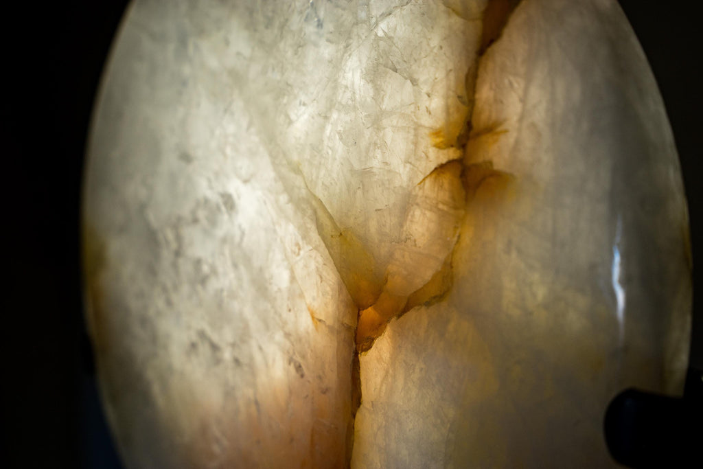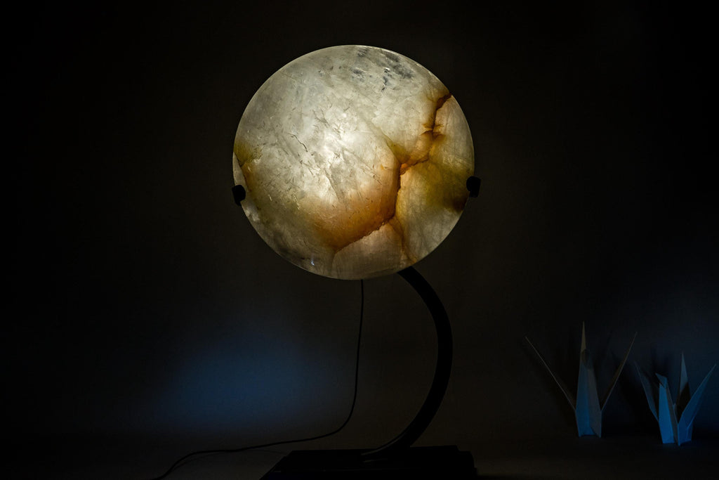 Crystal Quartz Lamp with Hematite Inclusions – Hand-Sculpted Natural “Full Moon”