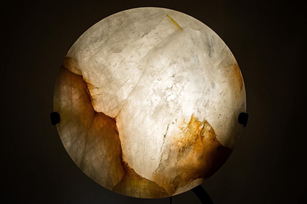 Crystal Quartz Lamp with Hematite Inclusions – a Natural “Full Moon”