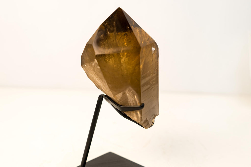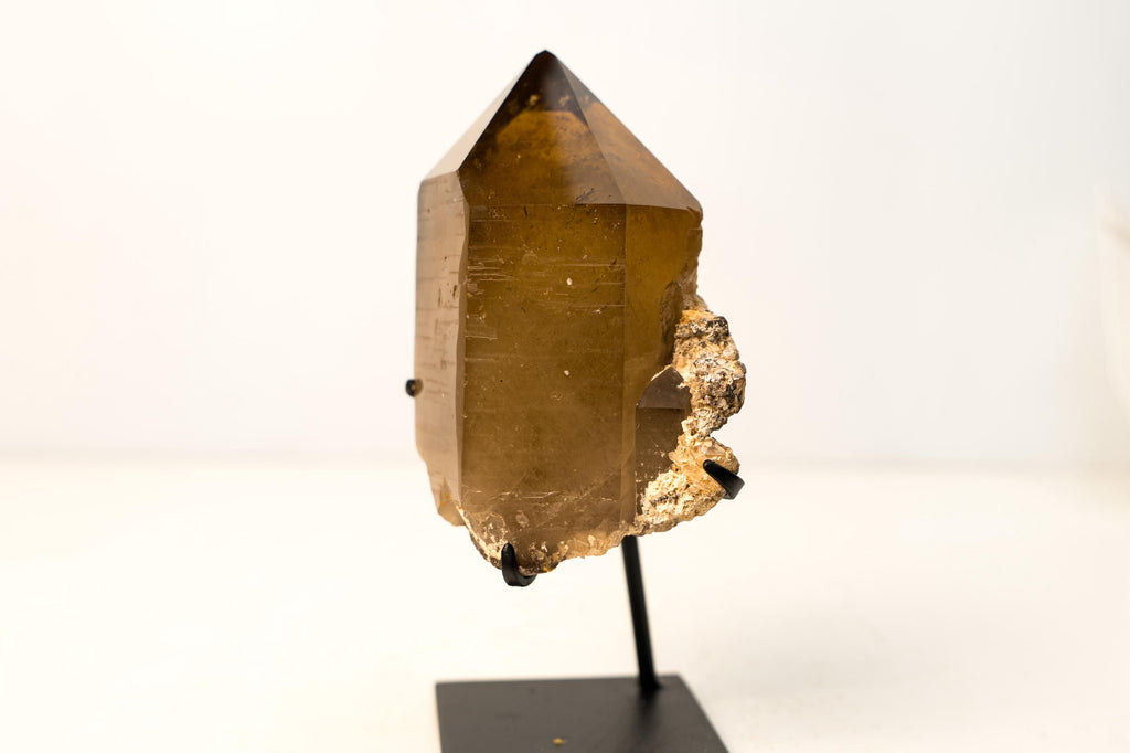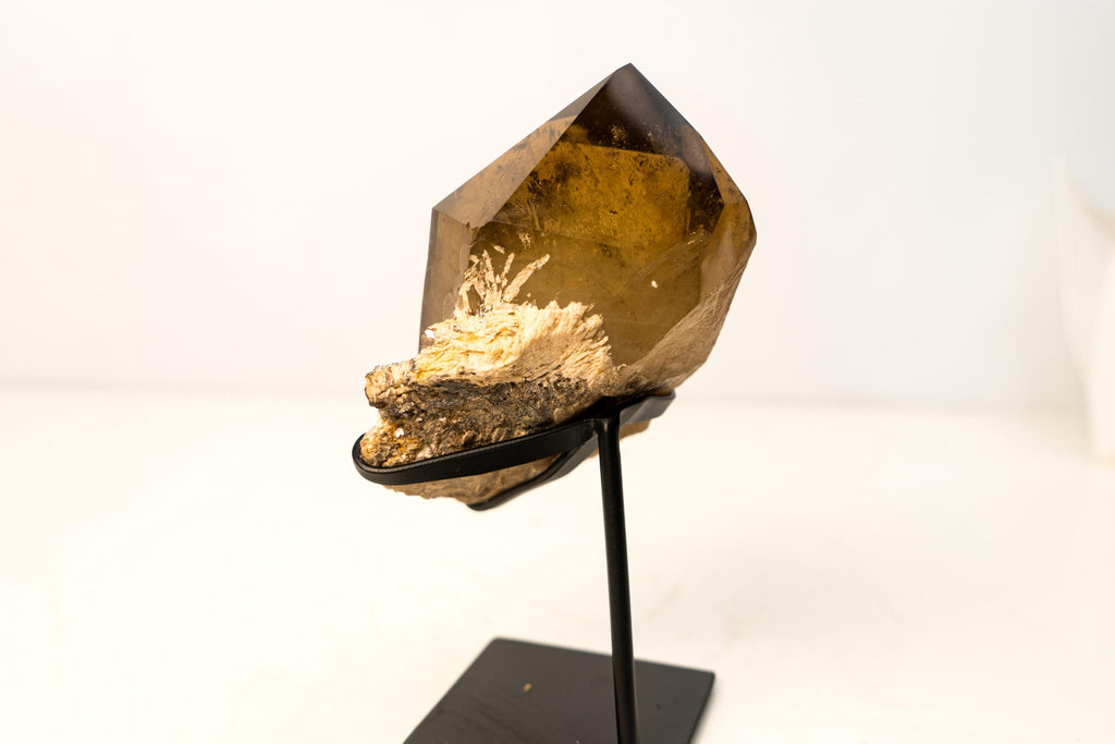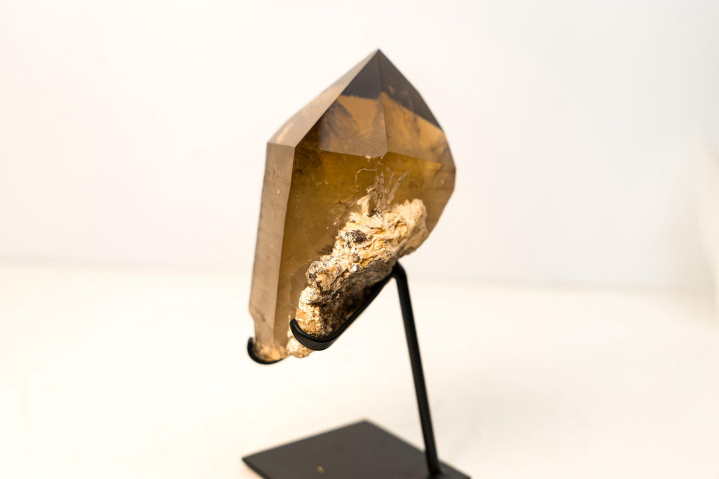 Smoky Amber Citrine Crystal Quartz with Lemurian Striations on Feldspar Matrix