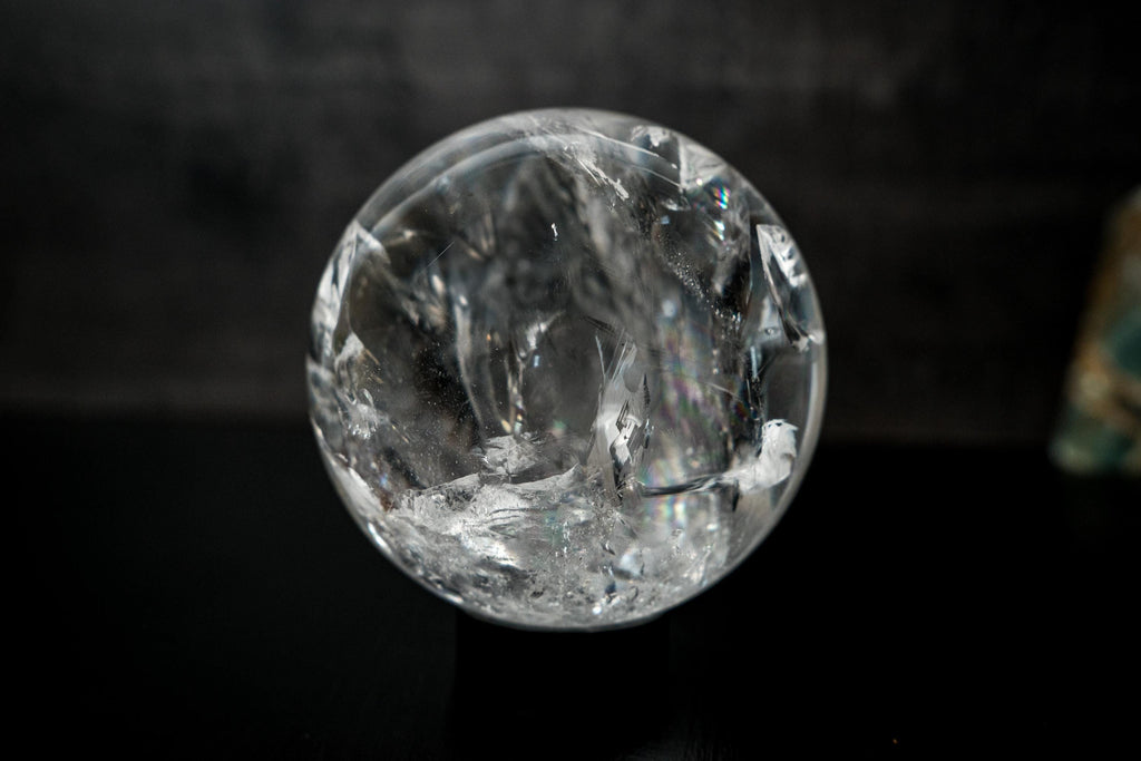 Natural Lemurian Water-Clear Quartz Sphere with Rainbows (5.1 Lb)