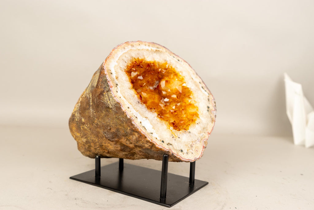Rare Natural Golden Orange Citrine Geode Cave – Feng Shui Crystal for Wealth, Energy & Prosperity