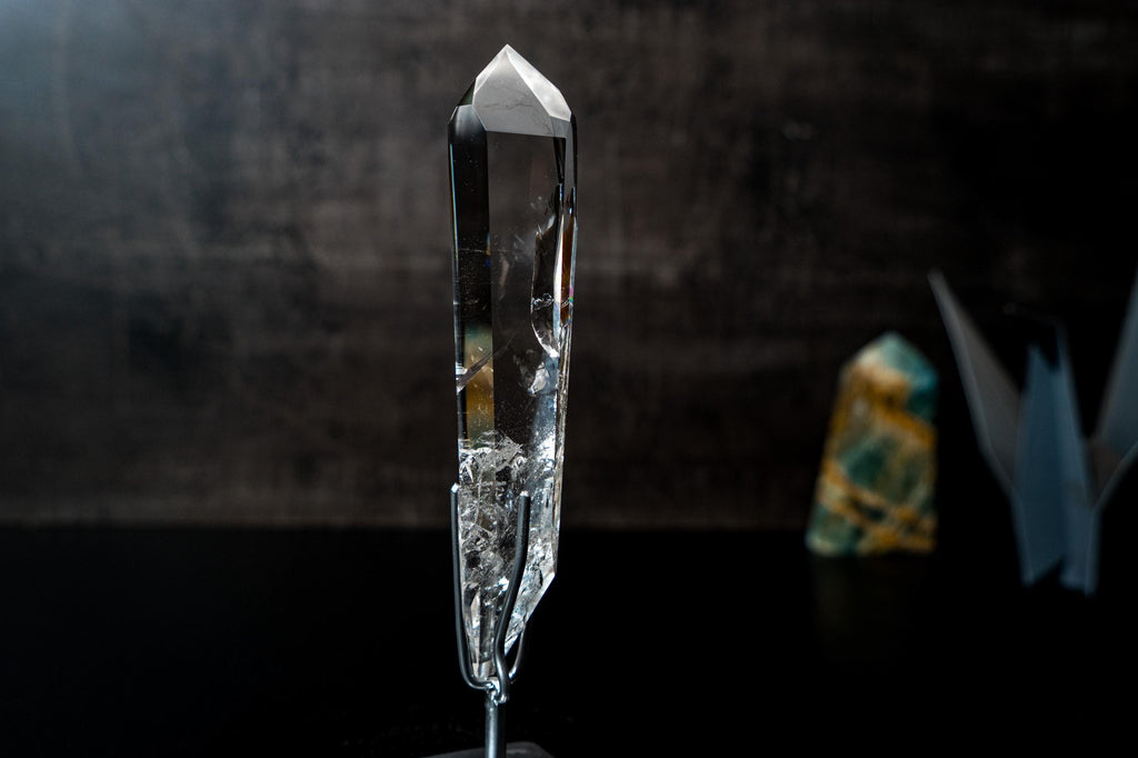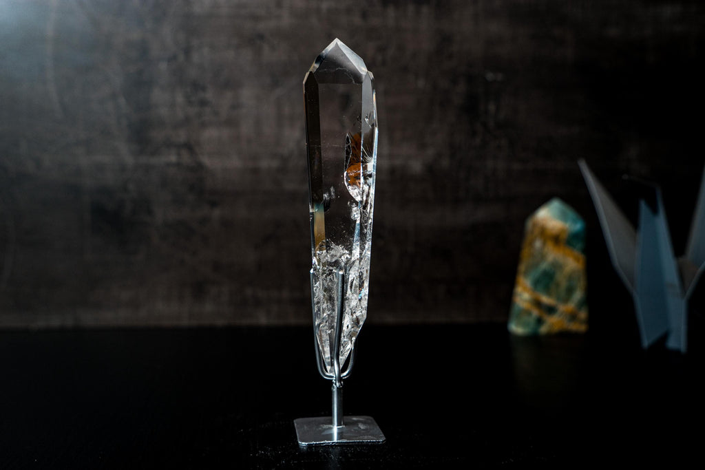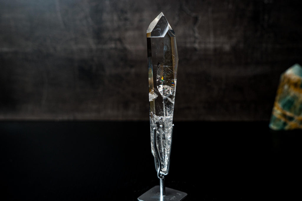 Diamantina Lemurian Quartz Obelisk (9") – Water-Clear with Rainbows