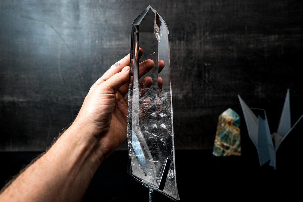 Water-Clear Lemurian Quartz Point – AAA Optical Quality (13")