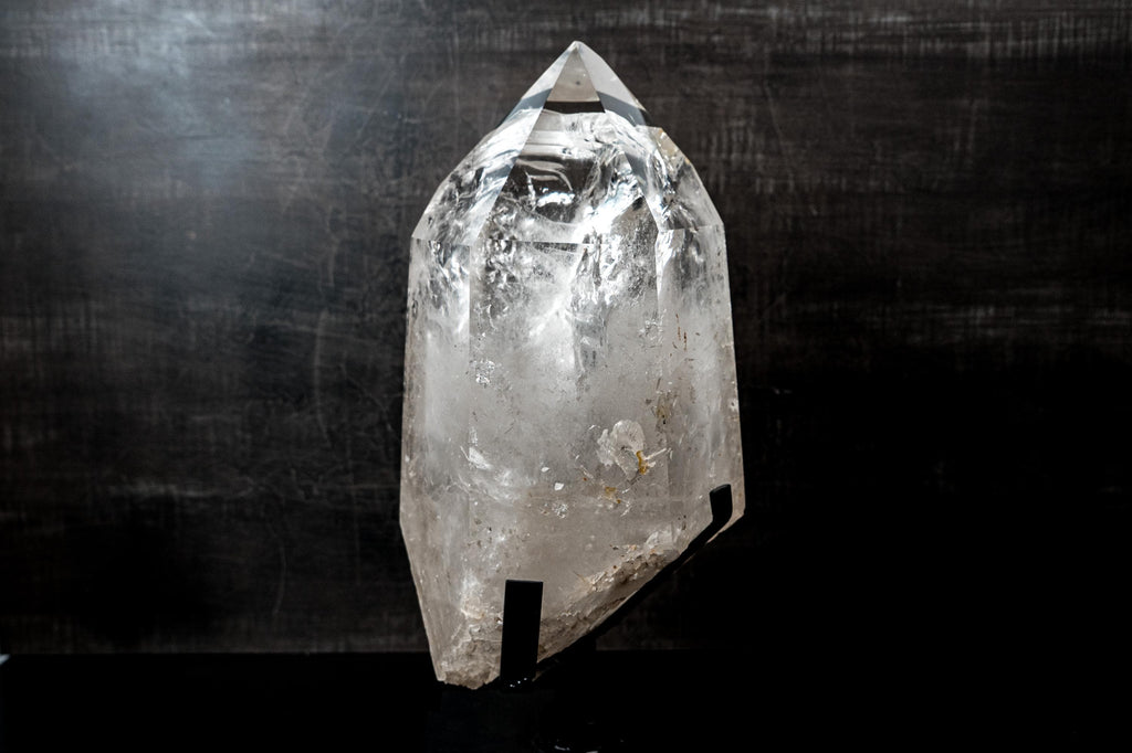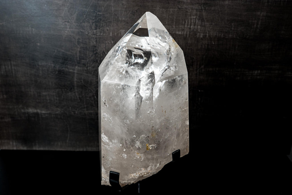 Nothing short of beautiful, this crystal point features an imposing size rarely seen in such proportions, while displaying exceptional clarity and presence. It is the perfect statement piece to serve as a centerpiece in a large room, drawing attention and elevating the energy of the space around it.